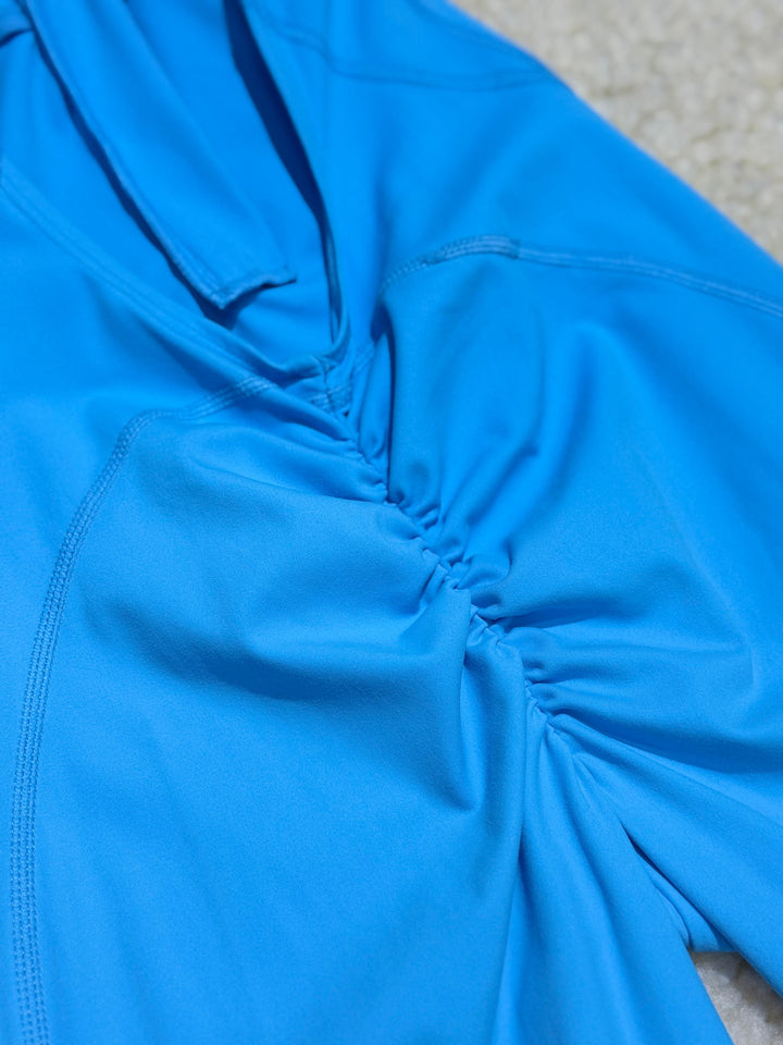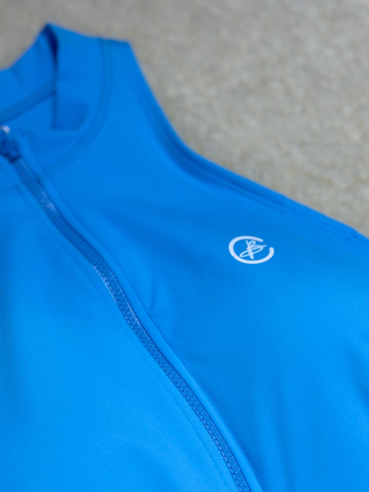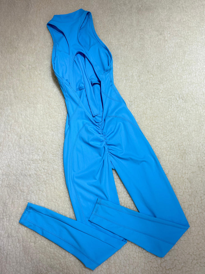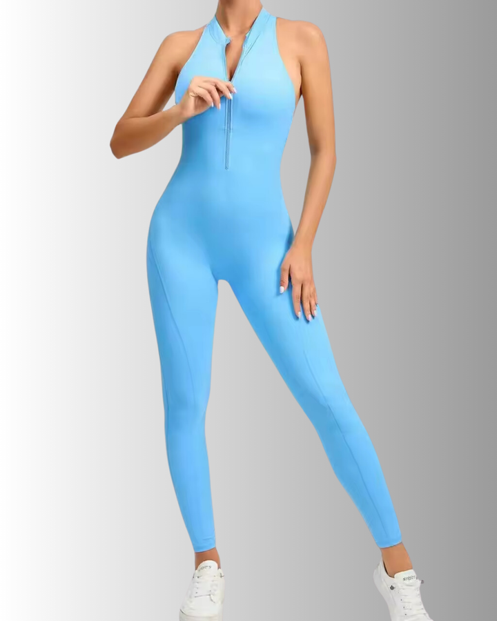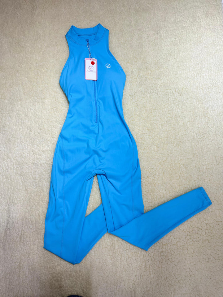 ENTERIZO DEPORTIVO LARGO CON CIERRE Y ESPALDA DESCUBIERTA AZUL TURQUESA