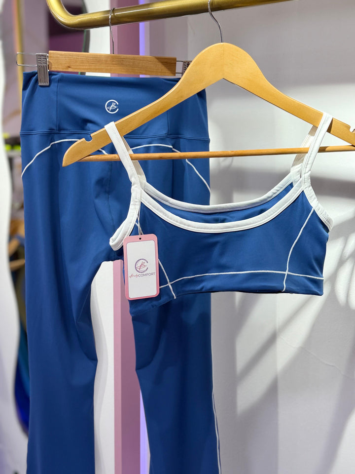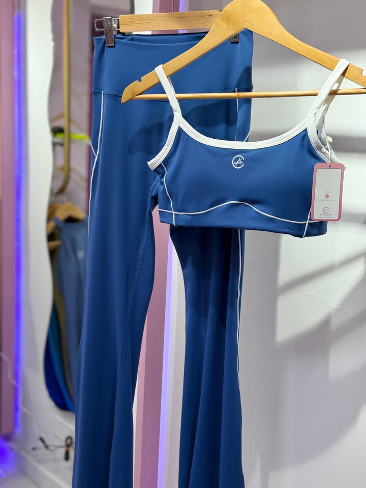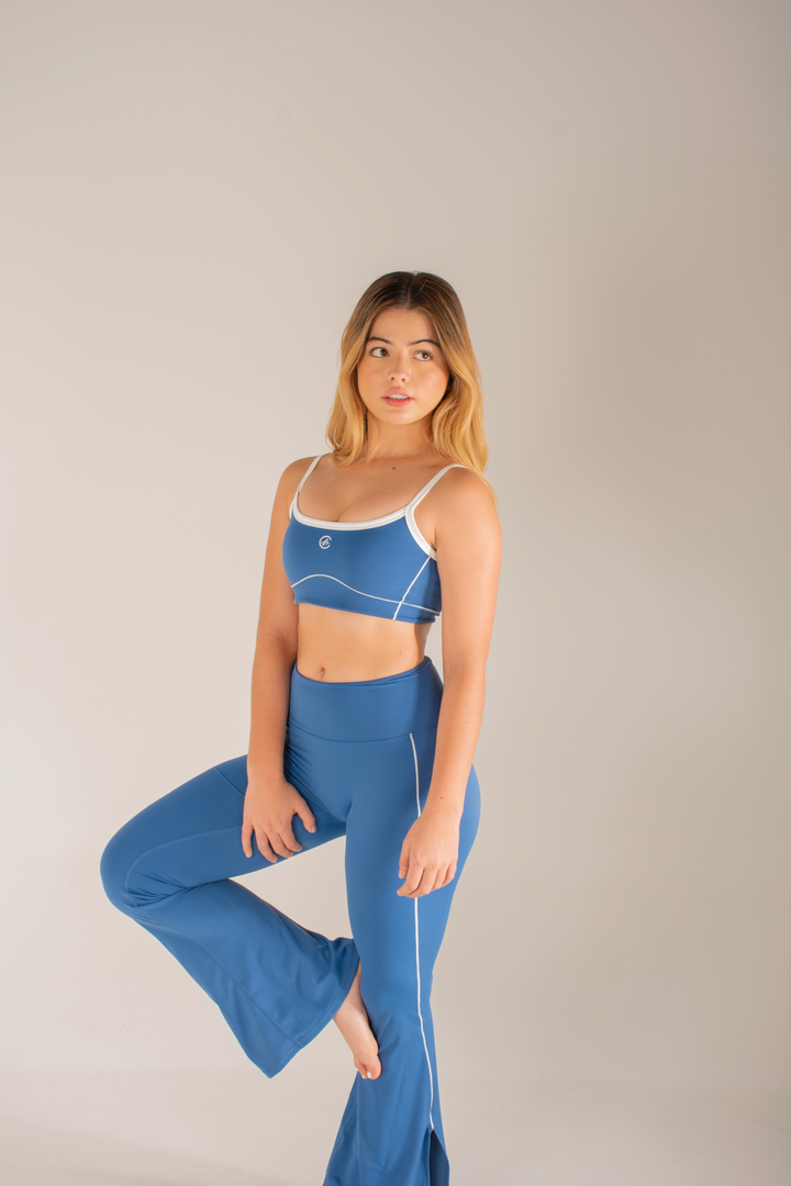 SET DEPORTIVO TOP Y PANTALÓN BOTA ANCHA AZUL (2 PIEZAS)