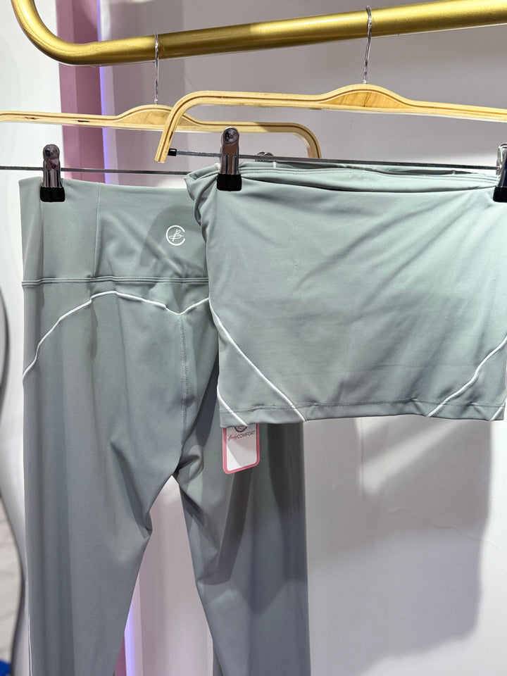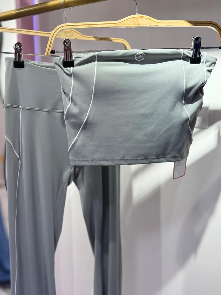 SET DEPORTIVO TOP STRAPLE Y PANTALÓN BOTA ANCHA GRIS (2 PIEZAS)