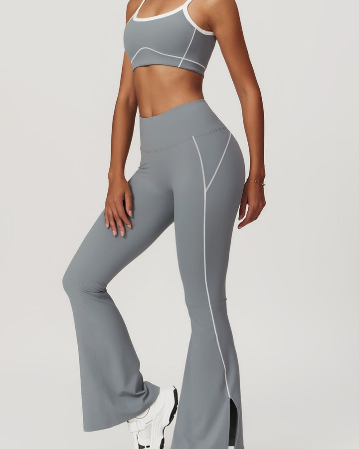 SET DEPORTIVO TOP Y PANTALÓN BOTA ANCHA GRIS (2 PIEZAS)
