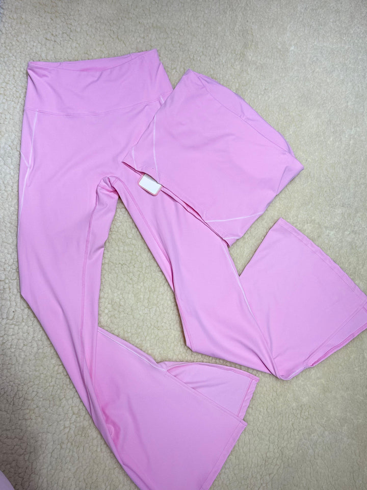 SET DEPORTIVO TOP STRAPLE Y PANTALÓN BOTA ANCHA ROSADO (2 PIEZAS)